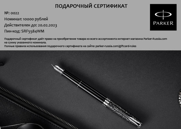 Подарочная карта Parker - Официальный дилер PARKER
